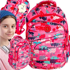 MODNY PLECAK SZKOLNY DLA DZIEWCZYNKI 3 KOMOROWY MOTYW OWIECZKI 26 LITRÓW