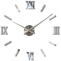 NOWOCZESNY DUŻY ZEGAR ŚCIENNY NAKLEJANY NA ŚCIANE 3D LUSTRO CICHY 130-70CM
