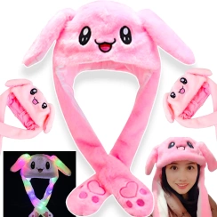 CIEPŁA CZAPKA PLUSZOWA - KRÓLIK RUCHOME USZY ŚWIECI LED ŁAPKI ŚWIECĄCE