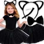 PRZEBRANIE CZARNEGO KOTKA CZARNY KOT ZESTAW 4w1 OPASKA SPÓDNICZKA DZIECI