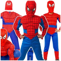 STRÓJ SPIDERMAN GRUBY Z MIĘŚNIAMI MASKA KOSTIUM PRZEBRANIE CHŁOPCA 122-128