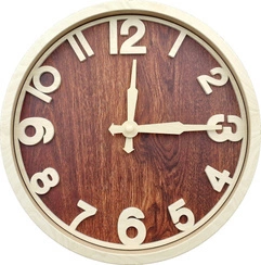 NOWOCZESNY ZEGAR ŚCIENNY Z DREWNIANA TARCZĄ BIAŁYMI ELEMENTAMI DUŻY 30cm