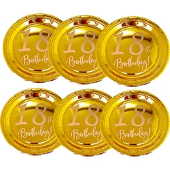TALERZYKI PAPIEROWE ZŁOTE NA 18 URODZINY ZESTAW EKOLOGICZNYCH TALERZY 6szt.