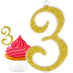 ŚWIECZKA URODZINOWA NA TORT CYFRA 3 ZŁOTA Z BROKATEM NA URODZINY