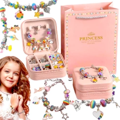 Zestaw do Robienia Bransoletek Koraliki Biżuterii Prezent Zawieszki Kuferek