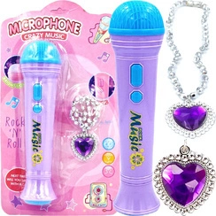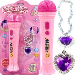 MEGA ZESTAW 2w1 MIKROFON DO ZABAWY NASZYJNIK ŚPIEWA MELODIE ŚWIECI LED