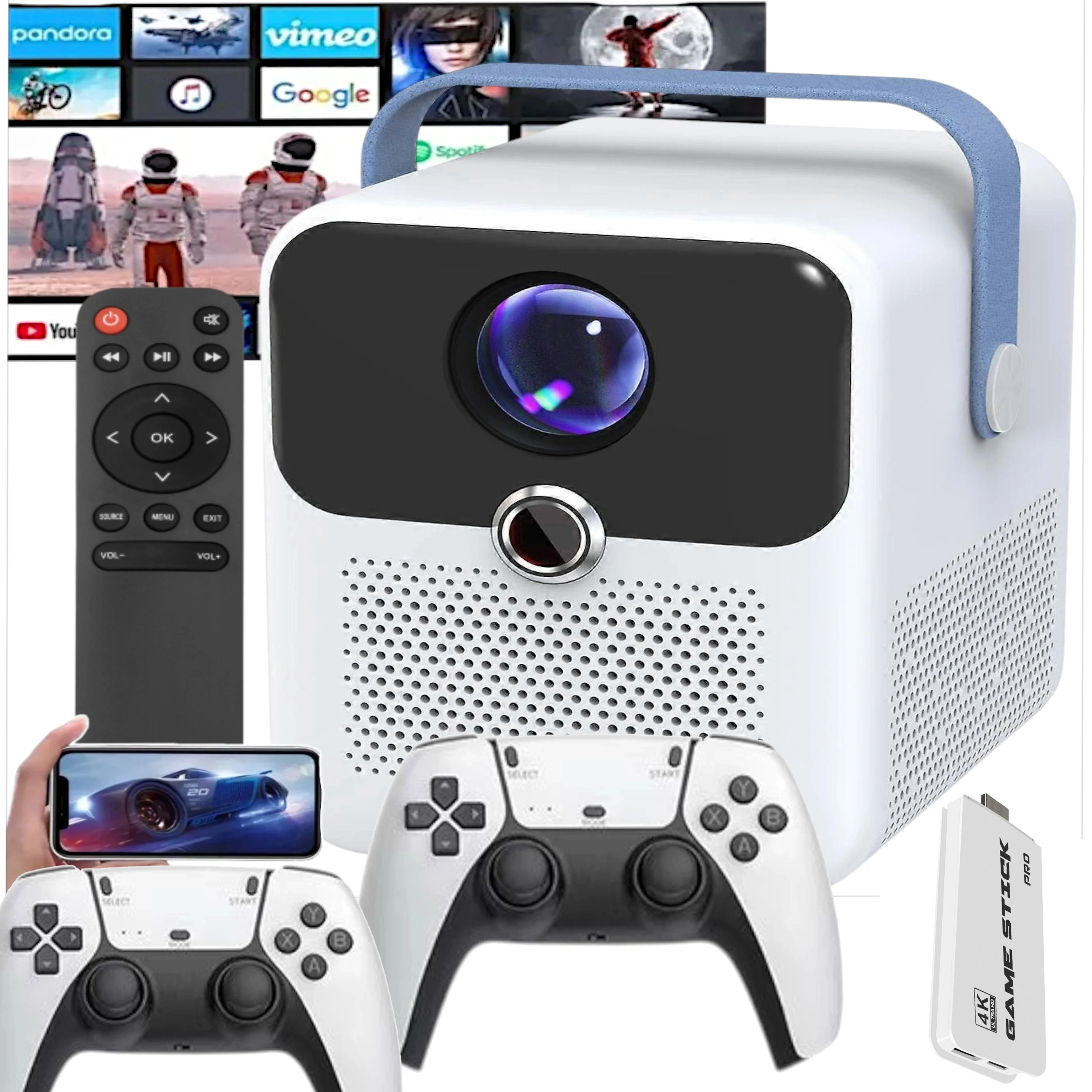 ⭐ZESTAW 2w1: MINI PROJEKTOR LED WiFi 5G + RETRO KONSOLA HDMI 20 000 GIER