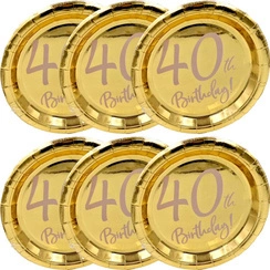 6x TALERZYKI PAPIEROWE ZŁOTE 40 URODZINY ZESTAW EKOLOGICZNE