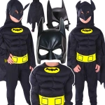 STRÓJ DLA CHŁOPCA PRZEBRANIE BATMAN PELERYNA GRUBY Z MIĘŚNIAMI roz 116-122
