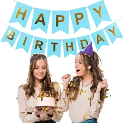 GIRLANDA URODZINOWA Z NAPISEM HAPPY BIRTHDAY BŁĘKITNA ZŁOTE NAPISY 200cm