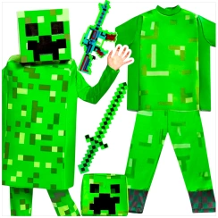 MINECRAFT Strój dla chłopca CREEPER / kostium na bal rozmiar M 120-130 cm + miecz + karabin