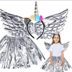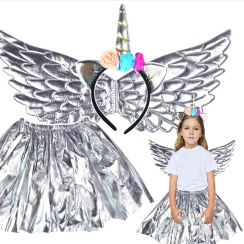 MAGICZNY STRÓJ JEDNOROŻEC DLA DZIEWCZNKI NA BAL SKRZYDŁA OPASKA SPÓDNICZKA
