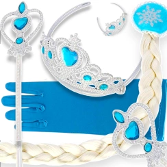 STRÓJ KRAINA LODU ELZA 4w1 WARKOCZ RĘKAWICZKI TIARA RÓŻDŻKA PRZEBRANIE