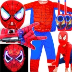 STRÓJ SPIDERMAN PRZEBRANIE DLA CHŁOPCA BAL 3w1 GRUBY MIĘŚNIE MASKA KOSTIUM
