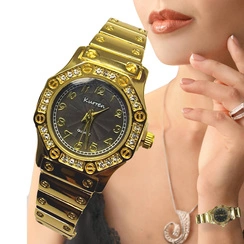 ELEGANCKI ZŁOTY ZEGAREK DAMSKI KURREN CYRKONIE KWARCOWY NA PREZENT MODNY