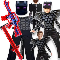 MINECRAFT Strój dla chłopca Smok Enderu rozmiar S (110-120) + miecz + karabin
