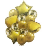 ZESTAW ZŁOTYCH BALONÓW SERCA GWIAZDKI KONFETTI 10szt. BALONY ZŁOTE