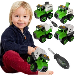 ZESTAW POJAZDÓW DO SKRĘCANIA 4 POJAZDY + ŚRUBOKRĘT ŚMIECIARKA RECYKLING