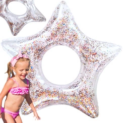 DMUCHANE KOŁO DO PŁYWANIA GWIAZDA Z BROKATEM 80 CM KOLOROWY BROKAT NA PLAŻĘ