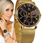 ELEGANCKI ZŁOTY ZEGAREK DAMSKI KURREN CYRKONIE KWARCOWY NA PREZENT MODNY